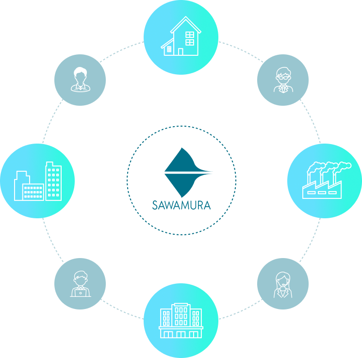 幅広い事業を展開しているところがSAWAMURAの特徴です。
